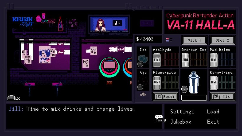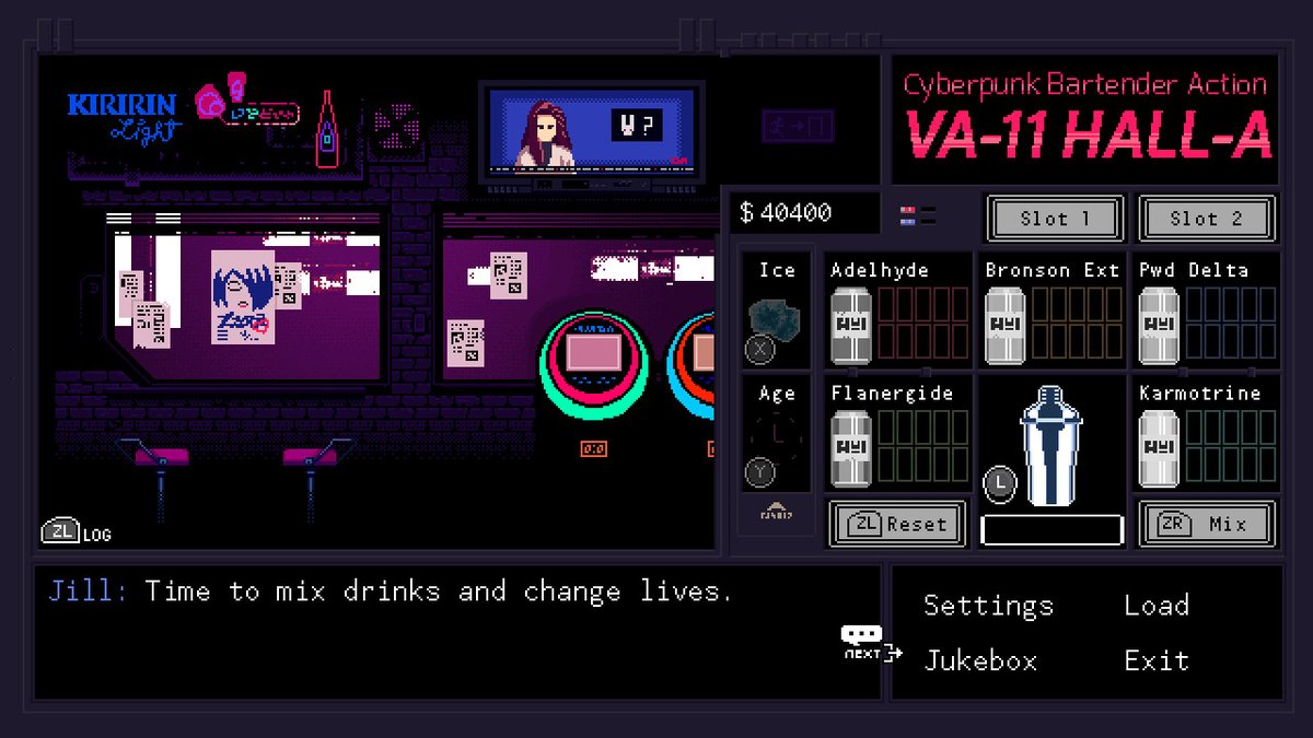 The older I get the more I’m gravitating more towards text based games. It all started when I got my PS-Vita. I played a few of those types, most notably Sweet Fuse and Steins;Gate. Another game I played, and fell in love with was a little indie game called VA-11 HALL-A: A Cyberpunk Bartender Action.